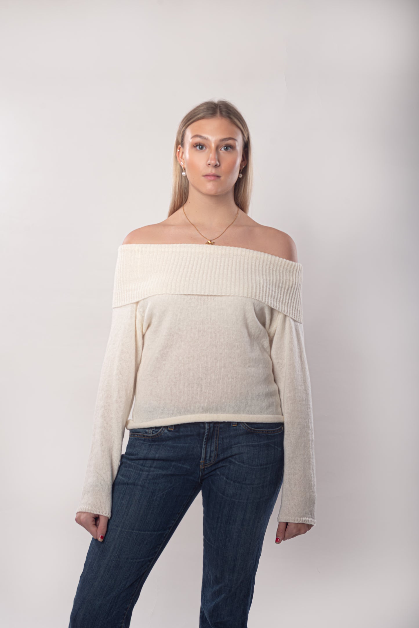 Safira knitted shirt, a knitted off-shoulder shirt that is both stylish and comfortable. Perfect to match with jeans or a skirt for a simple, yet stylish outfit.