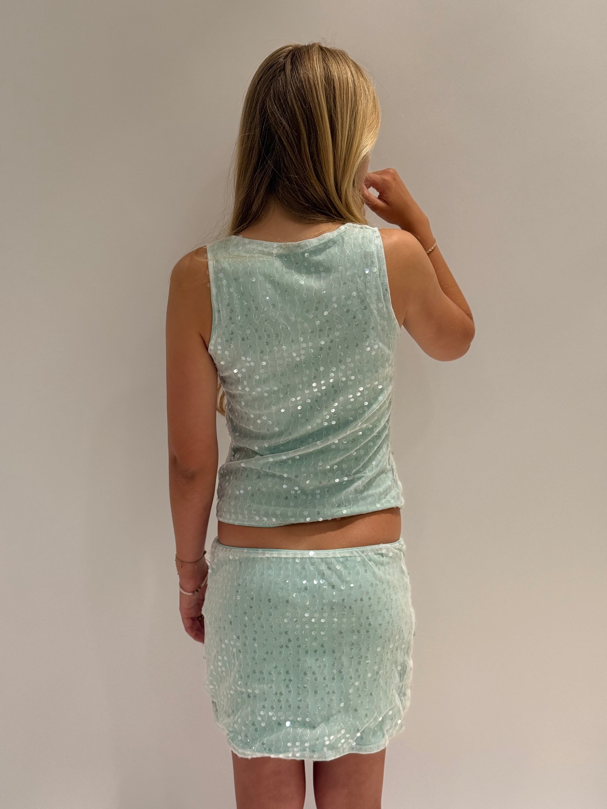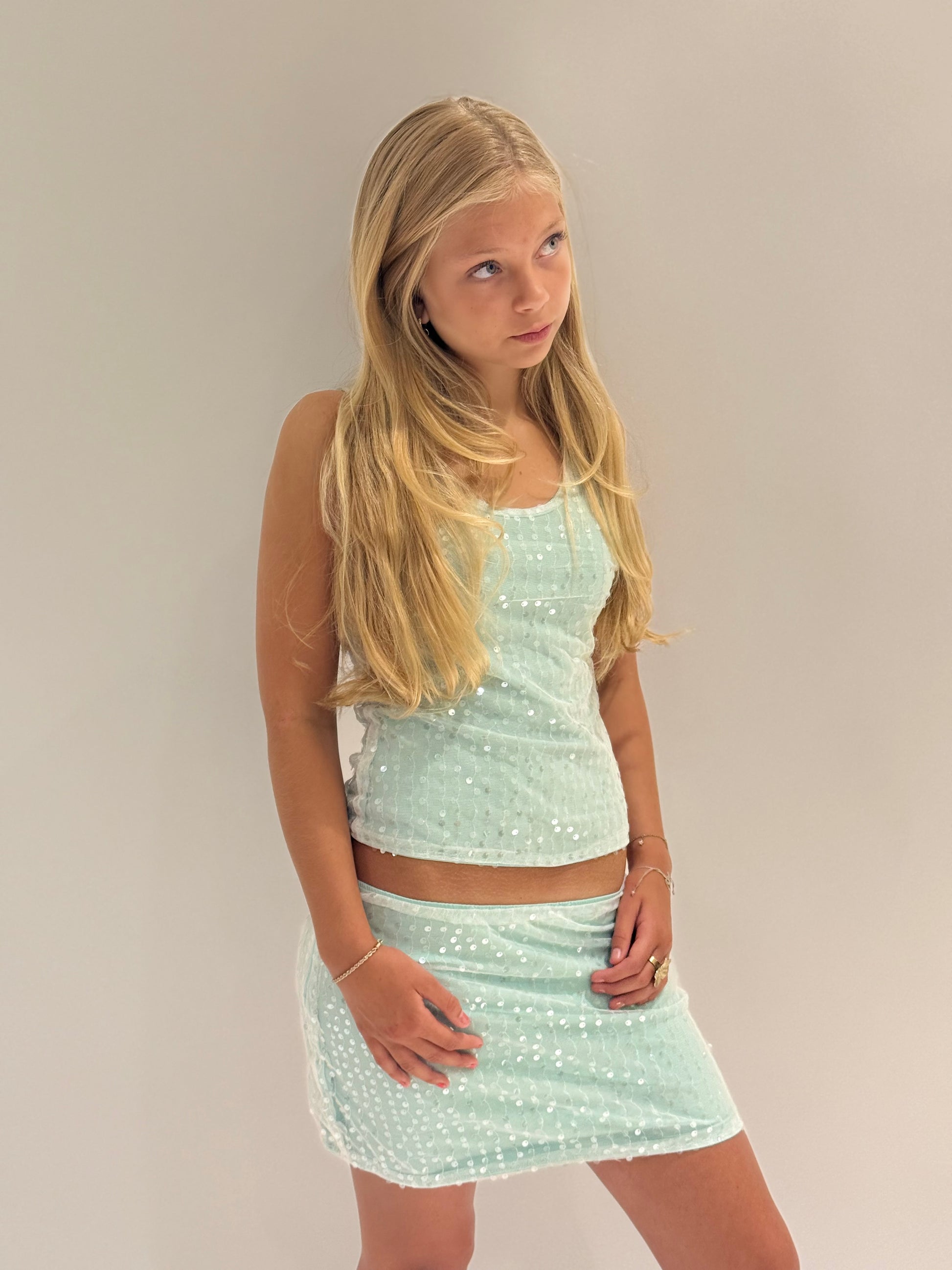 Gör ett glittrande intryck i vårt matchande set som kombinerar stil, glamour och självförtroende. Detta tvådelade set, täckt i skimrande paljetter, fångar ljuset från varje vinkel. Perfekt för festkvällen, nyår eller när du bara vill glänsa lite extra.