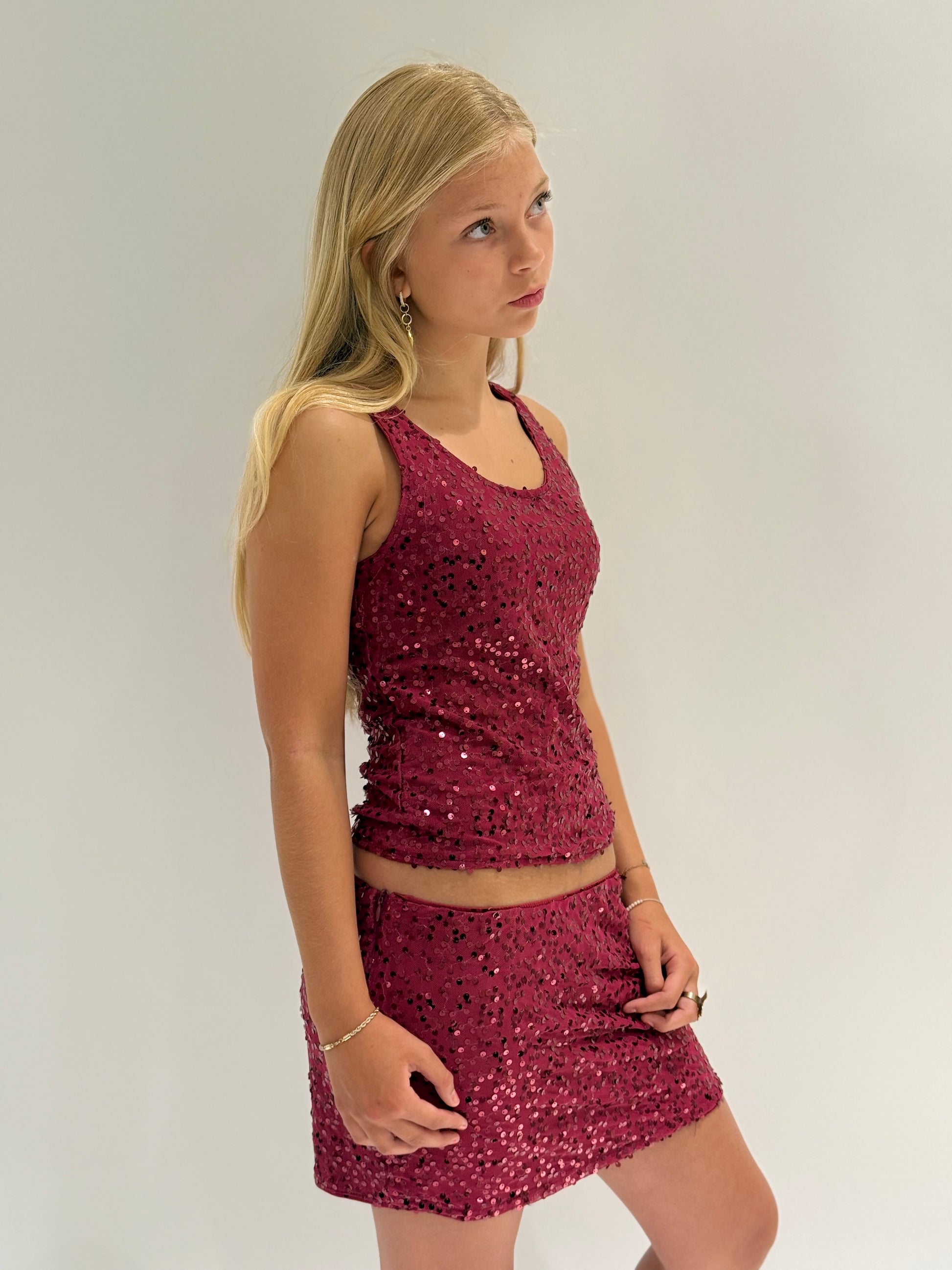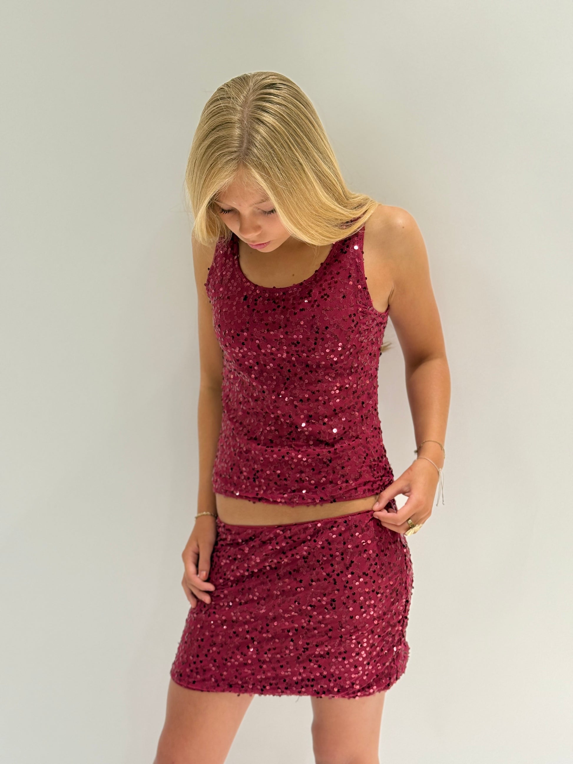 Gör ett glittrande intryck i vårt matchande set som kombinerar stil, glamour och självförtroende. Detta tvådelade set, täckt i skimrande paljetter, fångar ljuset från varje vinkel. Perfekt för festkvällen, nyår eller när du bara vill glänsa lite extra.