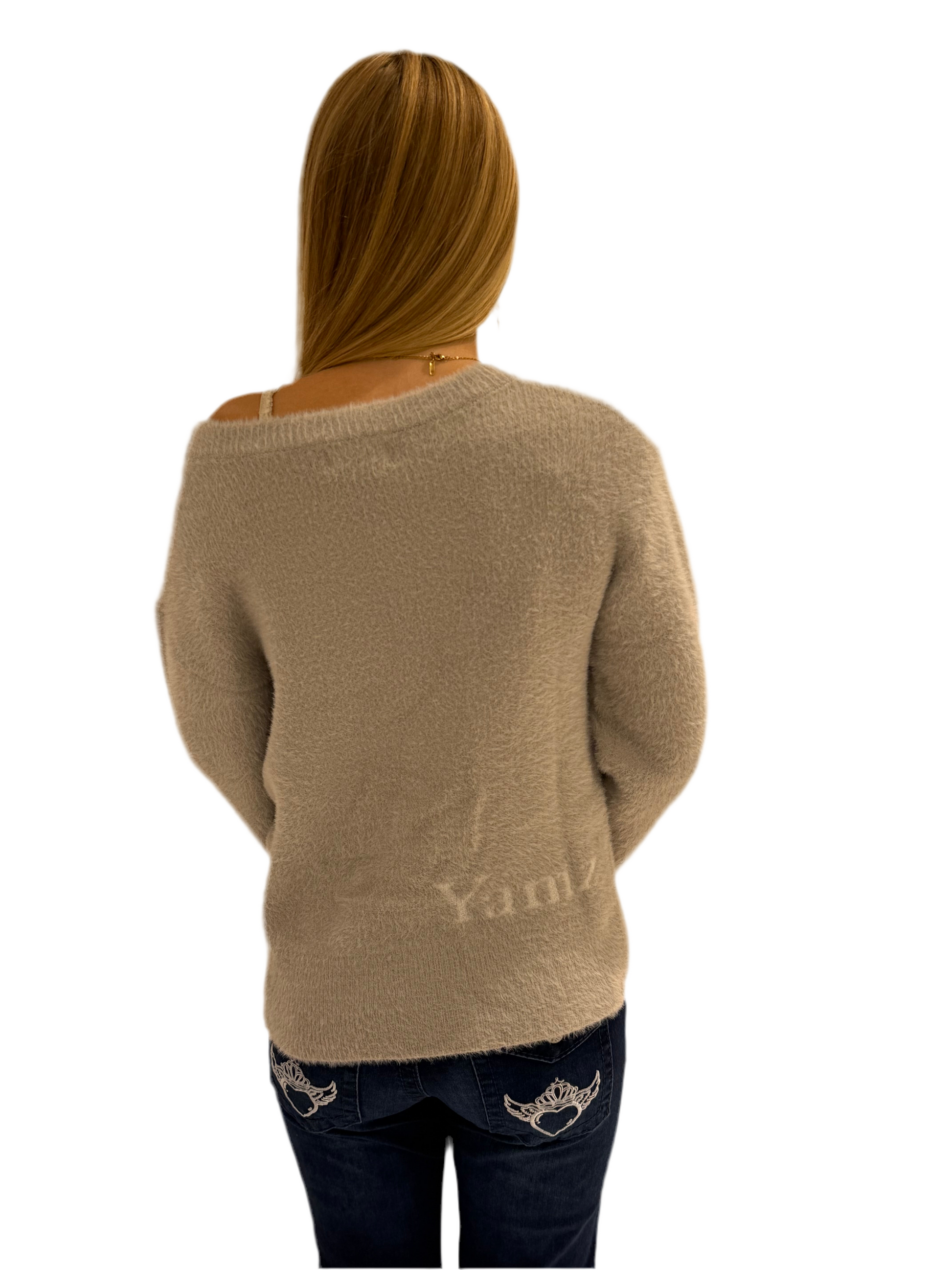 Denna fluffiga tröja är din nya favorit för kalla dagar och mysiga stunder. Tillverkad i ett mjukt och krämigt material som omfamnar huden på ett behagligt sätt, ger den både värme och stil utan att kompromissa på komforten. Tröjan har en luftig passform som gör den lätt att bära både hemma, på jobbet eller på en avslappnad fika med vänner. Den är fin att bära till både jeans, kostymbyxor eller en stickad kjol.