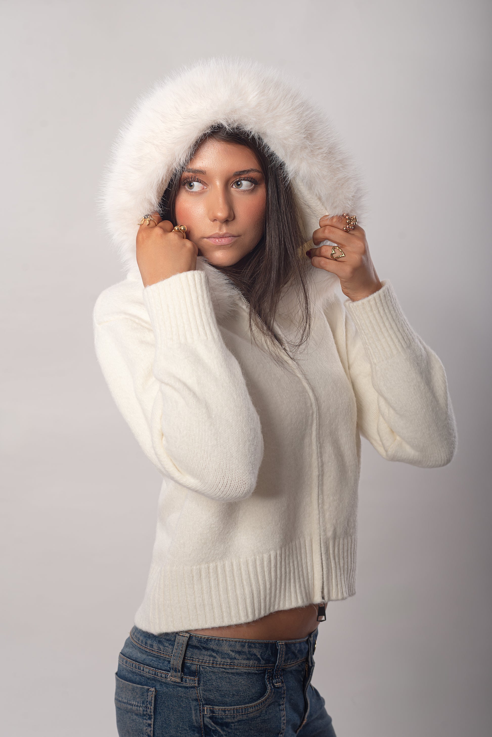 Ruby Cardigan är den perfekta koftan för en chic men avslappnad look. Den har en härlig pälsluva (inte äkta päls) som ger en extra touch av lyx och värme. Snygg att matcha med jeans för en stilren och bekväm outfit!
